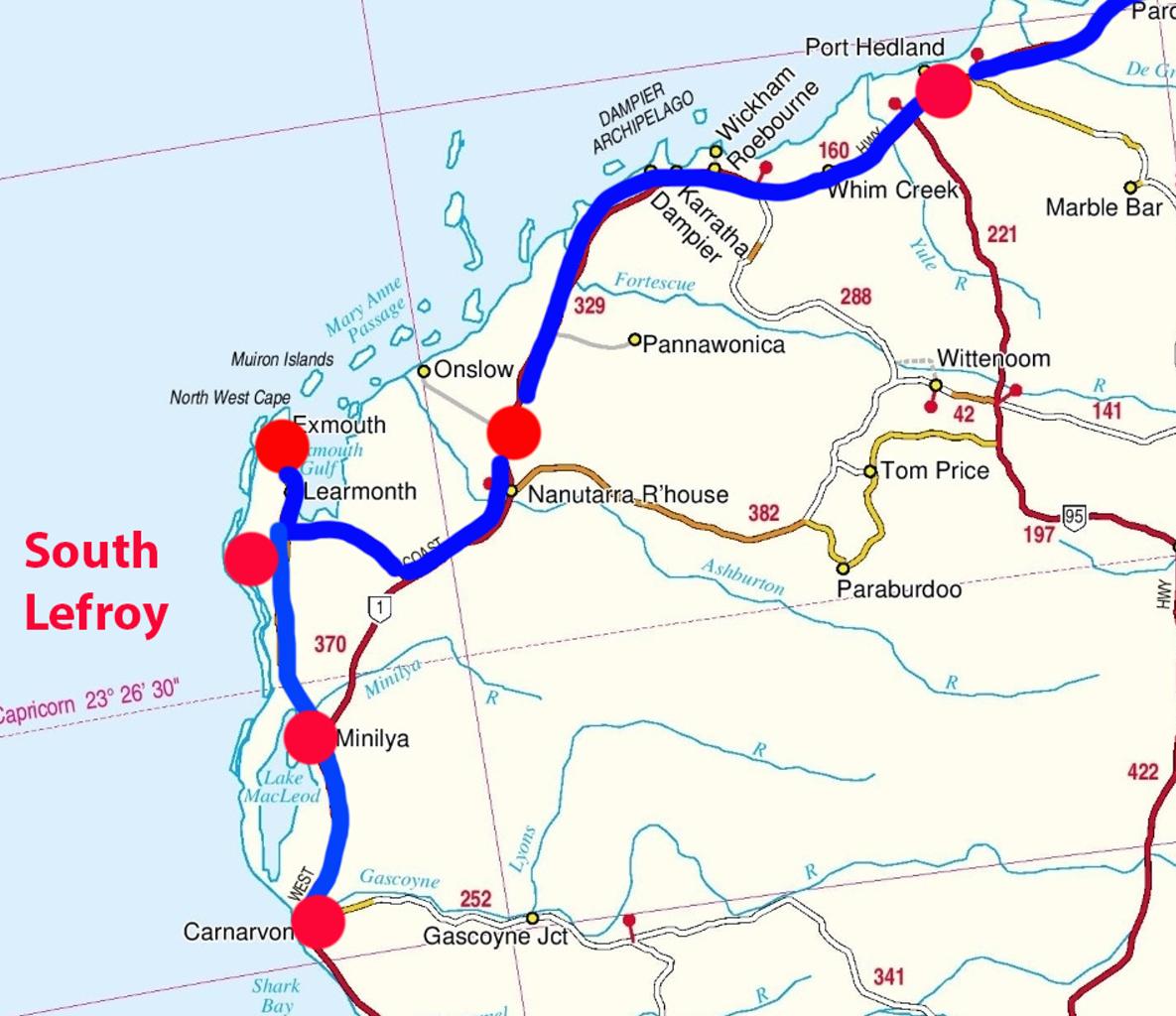 Leaving Coral Bay we crossed south over the Tropic of Capricorn. We've been in the tropics for over 3.5 months now. It's going to be cooler from here on, but hopefully down south will warm up for us!