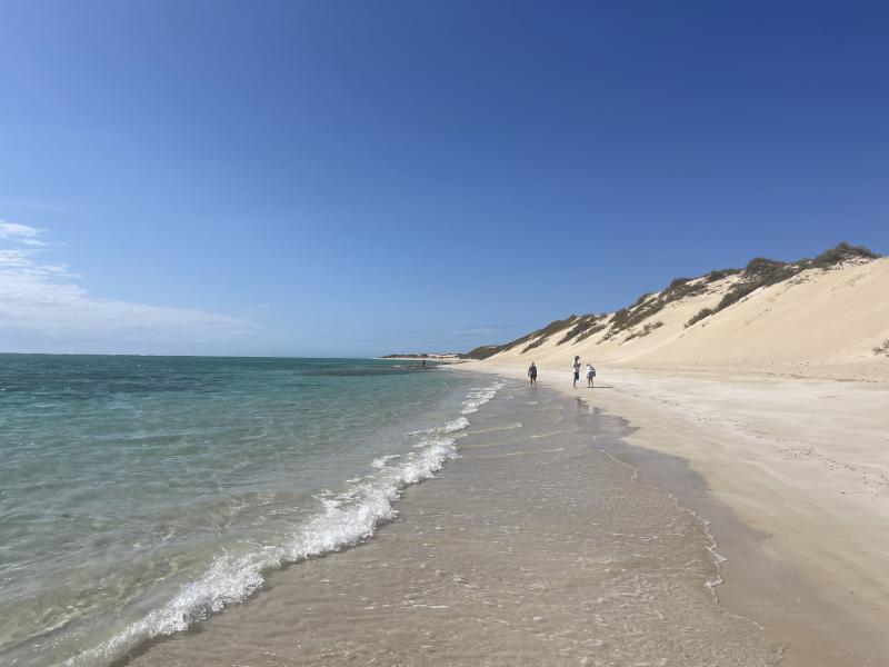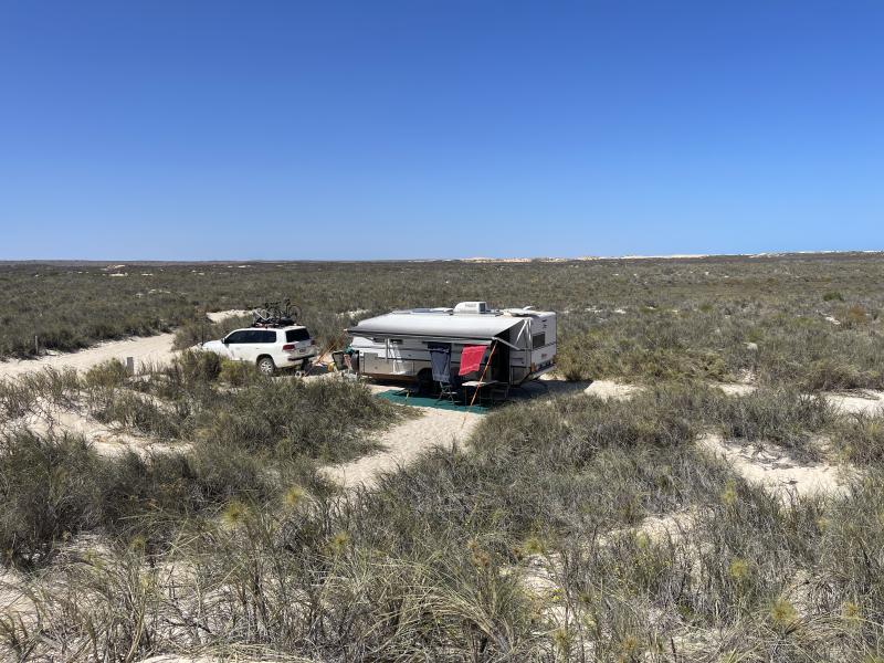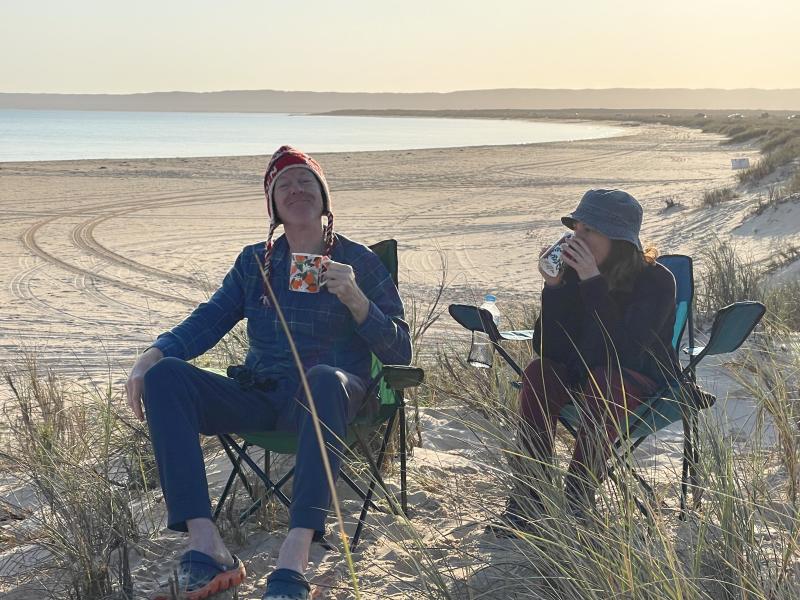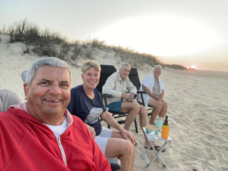 The next morning was cool, but hallelujah, the wind had stopped blowing, and we had magical calm warm days. Living on the sand is a different experience, and the Dyson vacuum cleaner came in very handy keeping the sand down to a reasonable level, either in a tent or caravan. Rod and Robyn quickly got used to living on the sand, and with the sand. Our time together was lots of fun and very special, and it was great to be able to show off our special place, and experience the great Australian West Coast.