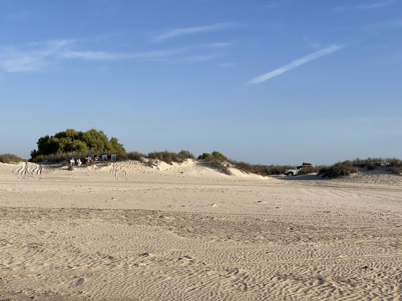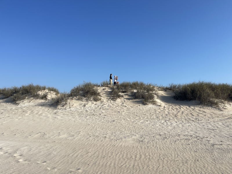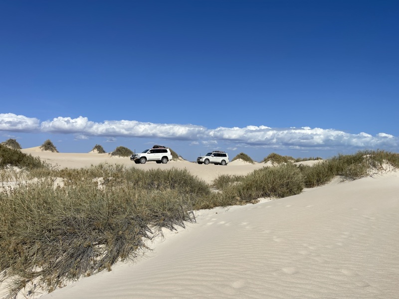 Getting there involves driving up and over sand dunes which is lots of fun.