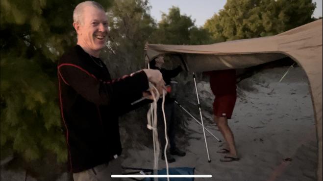 Jayne and Chuck's younger brother Rod and his wife Robyn flew from Sydney (via Perth) to Exmouth to join us for 5 nights. They hired camping equipment from Exmouth - tent, bedding, table, toilet etc etc. Chuck picked them up from the airport, and the wind was still blowing when they arrived at Ningaloo at sunset. It was all hands on deck to get the tent set up in the dark with the wind blowing. Car headlights were switched on, and the 6 of us turned into a well oiled machine setting up their camp.