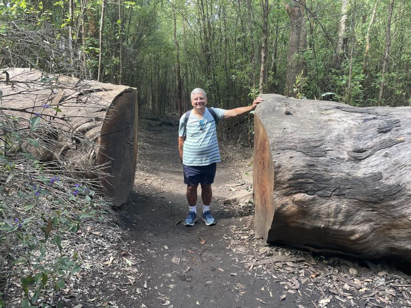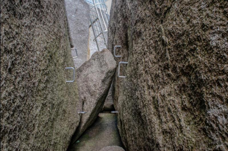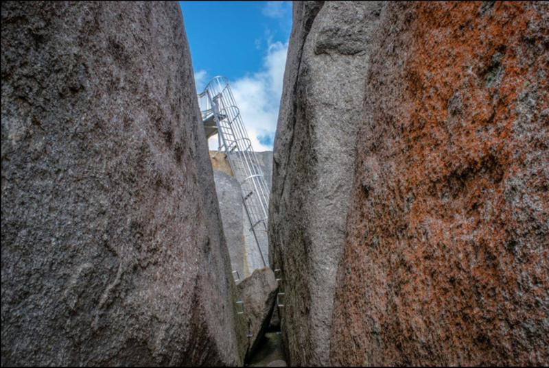 After walking constantly up a steep path for 2.3kms, reaching the upper lookout requires walking through and over rocks, scrambling through tight squeezes using very suitably placed hand grips which were a real challenge to manoeuvre through and then climbing a 6m ladder. When we were waiting our turn to scramble between the boulders, we overhead a young boy say to his Mum on his return "I thought I was going to shed a few tears doing that". And we hadn't climbed through then!