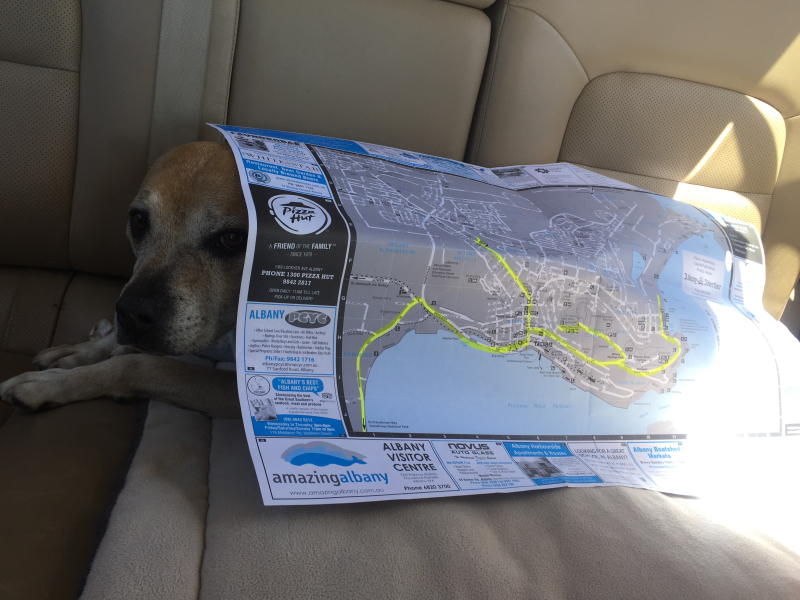 On entering the National Park the sign says "If you have a dog in your car, turn around now". We told Bailey to stay in the car and sleep (easy enough) and we covered him over with a map and he was still asleep when we returned.