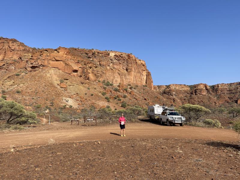 The view was really spectacular but the camping area was in the scrub, quite small and very tight. We wondered why Wally the camp host decided to volunteer for 4 weeks out here amongst the dust and flies. The clean car and van didn't last long as it was over 61 kms of dirt road just to get into the gorge.