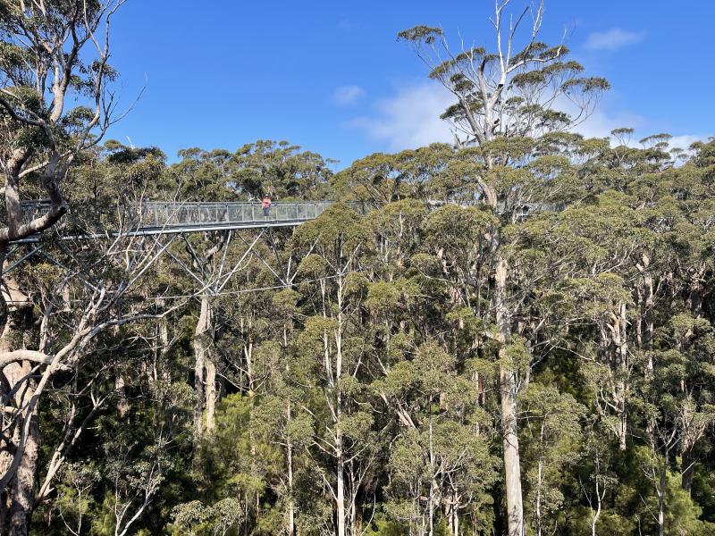 The Tree Top Walk is suspended 40 metres high in the canopy of the ancient Tingle and Karri forest. This circular walk is 800m long and very spectacular.