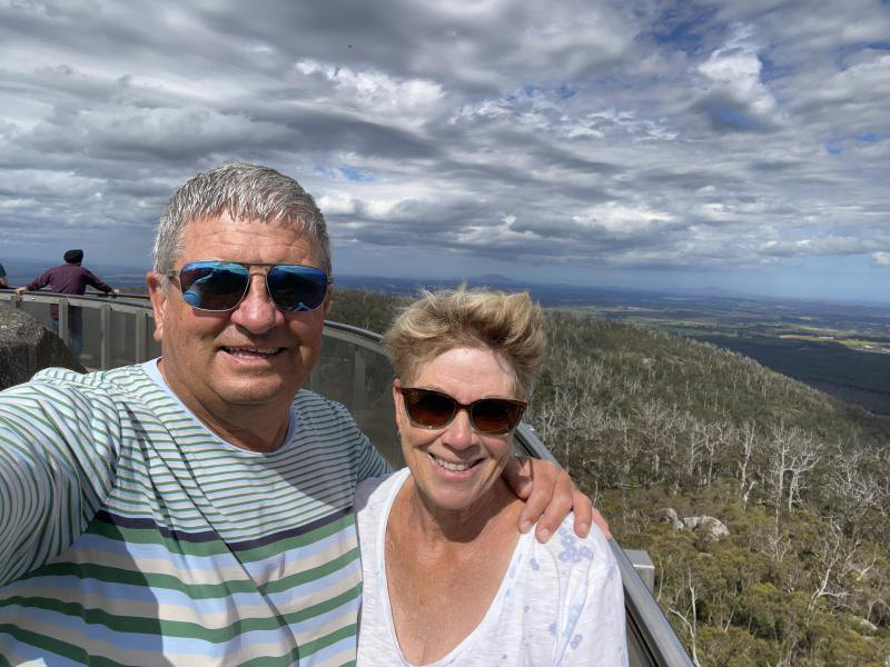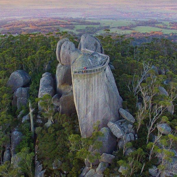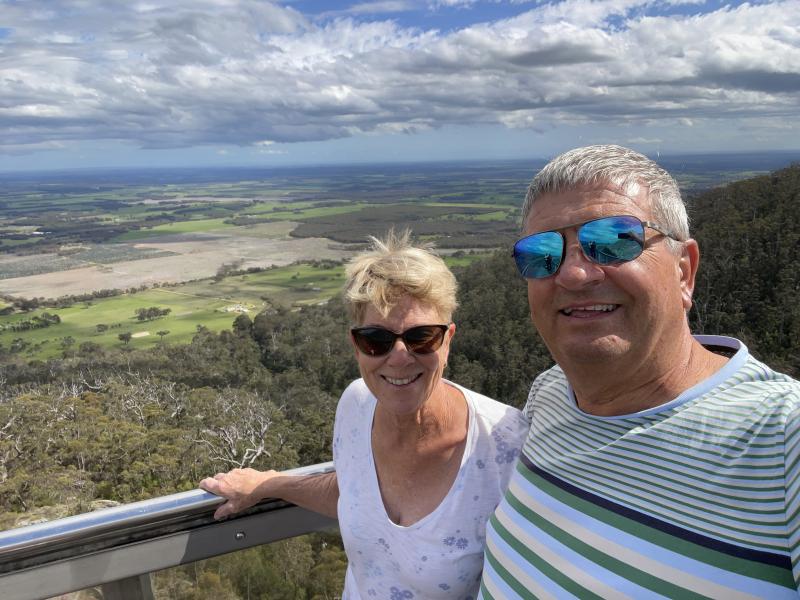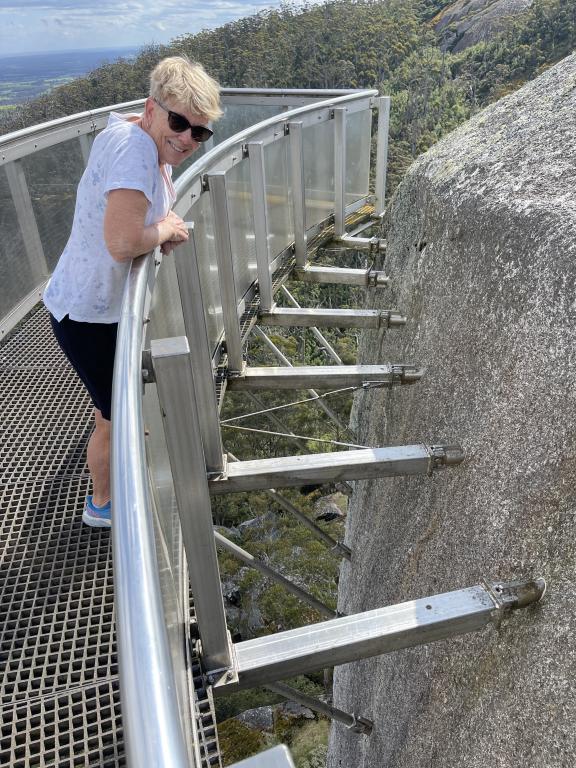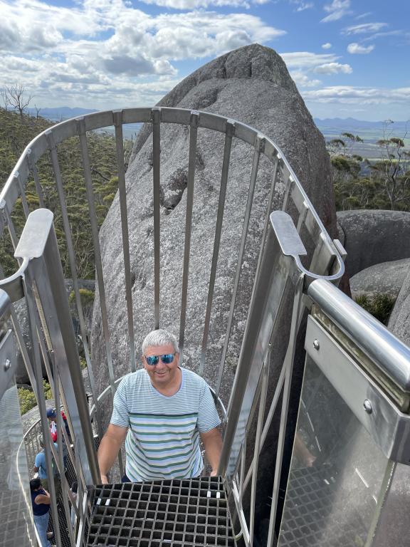 We looked at this walk and photos and were suitably impressed with what we had read. The description of this Grade 5 hike is "The 4.7 km (return) Castle Rock Trail in Porongurup NP starts at the Castle Rock picnic area and climbs through Jarrah, Marri and Karri forest, past the fascinating Balancing Rock to the base of Castle Rock and the lower lookout. A further steep and challenging climb, scrambling over rocks and climbing a 6m ladder brings you to the Granite Skywalk; an amazing steel structure that winds its way around the massive granite dome, providing panoramic views of the surrounding countryside".