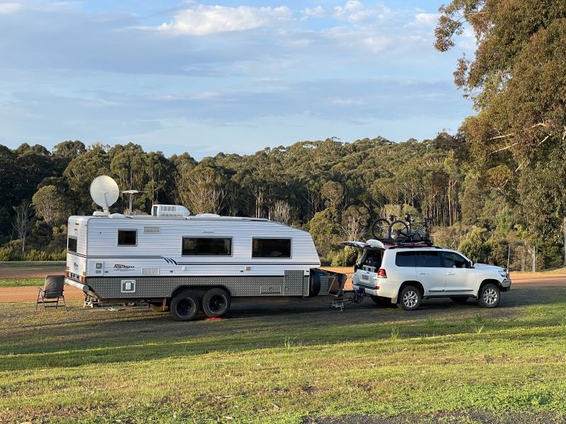 The Riverbend Caravan Park in Denmark was excellent. It had a real country feel to it, with fields of lush green grass complete with power, water and fire pits. We needed the fire pit as the nights were exceptionally cold.