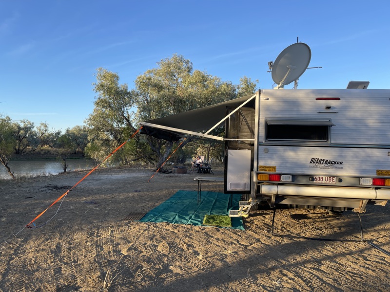 It's part of a large cattle property and has 11 sites all along the Thomson River - all far apart from each other. You can't hear or see your neighbours, if they exist. As we're in Site 11, we're at the end of the road, so nobody drives past. We walked to site 10 yesterday and its not as good as 11.