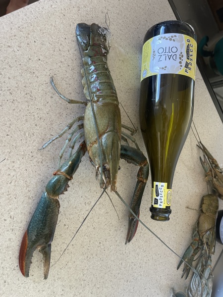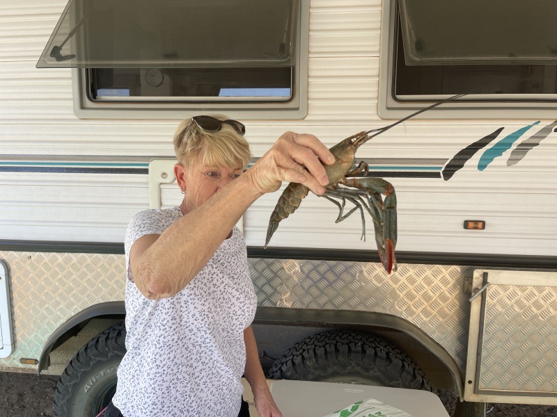 Then it was Red Claw-ing time again. So far this morning she's had zero success, and we must have cleaned that part of the river out yesterday. We've moved the net 20 metres further down the river, and tried a different cat food. Just doing our bit for the environment.