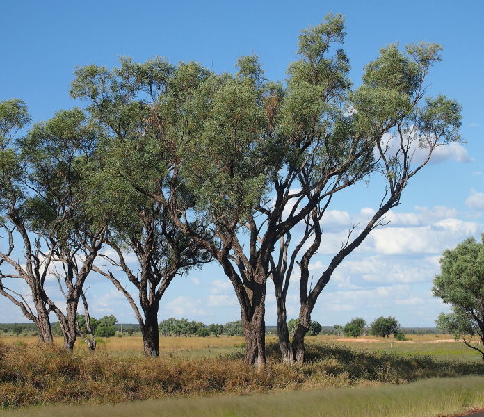 Once you venture north past Bourke NSW then into Outback Queensland, there's a distinctive disgusting smell as you drive along some areas. This is the Gidgee Tree, or Stinking Wattle. It smells like boiled cabbage or sewage. 2 years ago, Alan and I drove from Bourke through the rain and crossed the border into Queensland, pulling into the Cunnamulla Caravan Park for the night. Something really reeked, and we hunted everywhere in, around and under the caravan and car, certain we'd picked up a dead kangaroo and dragged it all the way to Cunnamulla with us. But the owner of the park told us it was just the Gidgee Trees along our drive, and we could stop looking for any road kill. The trees are everywhere around here, and when the wind blows in your general direction it's a really disgusting smell. It does have one redeeming feature though - it's the 3rd hardest wood in the world, and known to blunt the blade of a chainsaw. It was, and still is today, used for fencing because it's so tough.