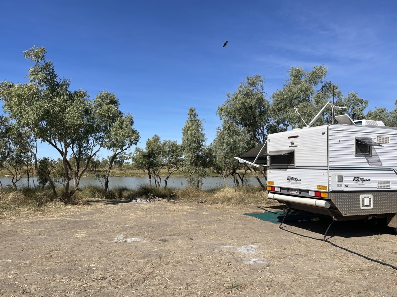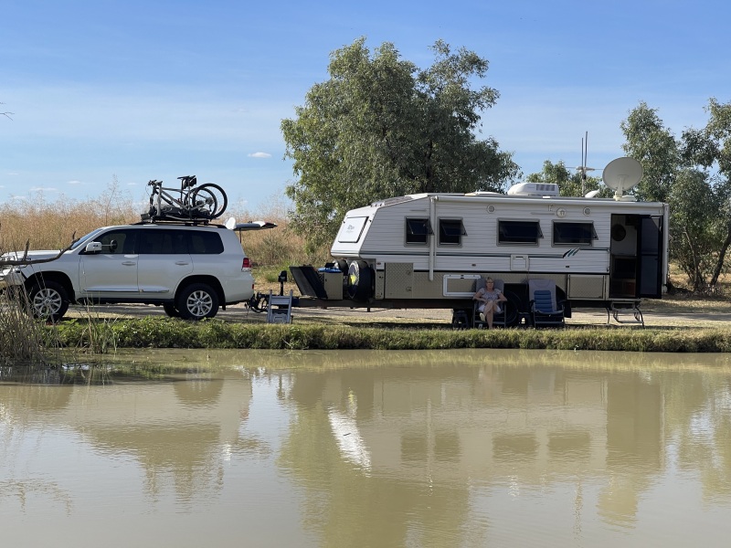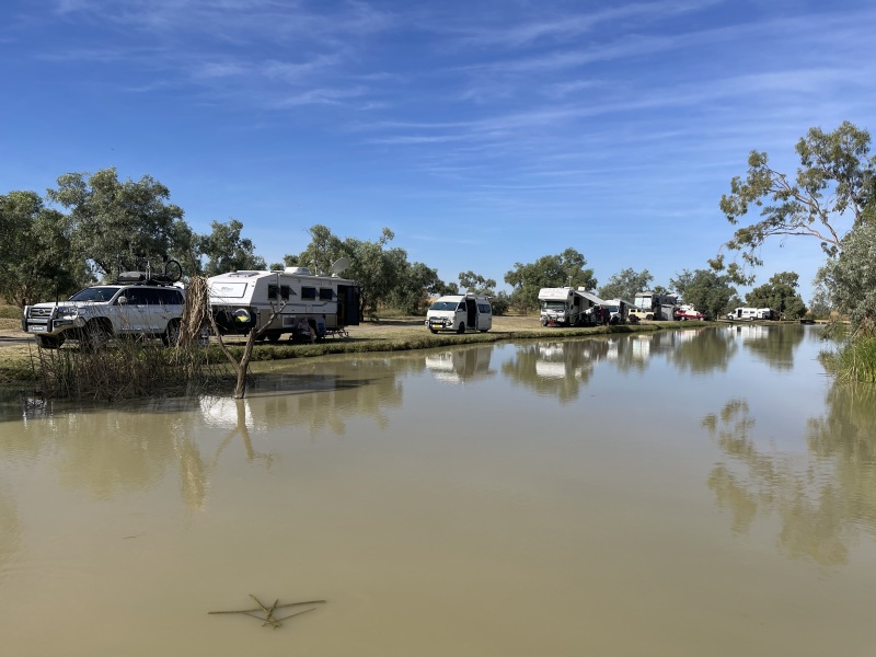 Travellers are nervous about camping along the Billabong now, but we decided if there was no sign saying it was closed, we'd camp anyway. It was still open, so we found ourselves a beautiful spot along the waterfront with about 20 other vans for the night. Normally there would have been 50 to 100 in the whole area, which is very large and well spaced out.
