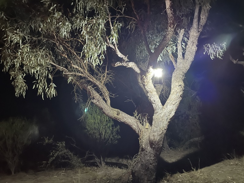 Jayne hung her fancy USB light in the tree near our fire, so we had light to dine under.