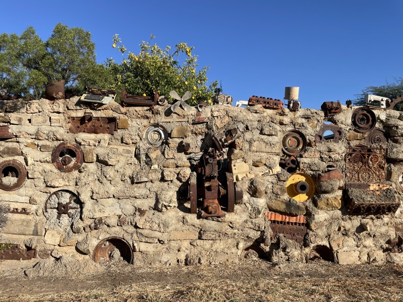 Arno's wall in Winton. A collection of things Arno collected from the town dump.