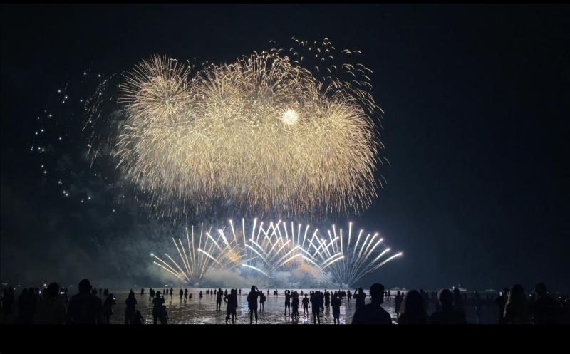 We settled on the beach and waited for the fireworks to start. Amazingly they had cordoned off two areas where people could set off their own fireworks mostly ahead of the main show.
