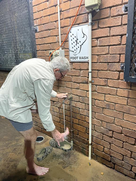 Naturally when you leave a beach you have to wash the sand off your feet. This was the first time we've ever queued to do this!
