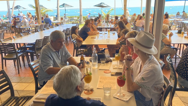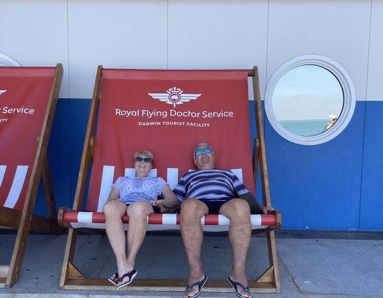 Lisa and Russ's daughter Emma came to Darwin to spend a weekend with her friends who had moved up in February. We were so glad she made time to join us for lunch at the Darwin Trailer Boast Club. She had an important special delivery for Chuck - his PUFFER JACKET! Who needs a puffer jacket in Darwin? Chuck does :) And we had Merv's discount card with us again which was an added bonus with cheaper drinks and food.