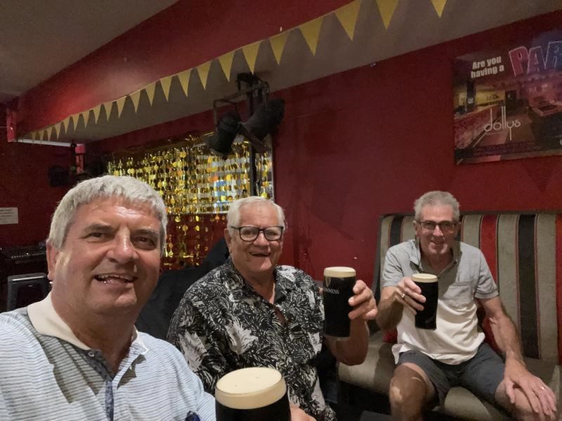 On Friday, Merv took the boys to visit the local skimpy (topless) bar for a Guinness or two. As you do, especially if you're with Merv! Chuck didn't enjoy the topless bar at all. Yeah, right!