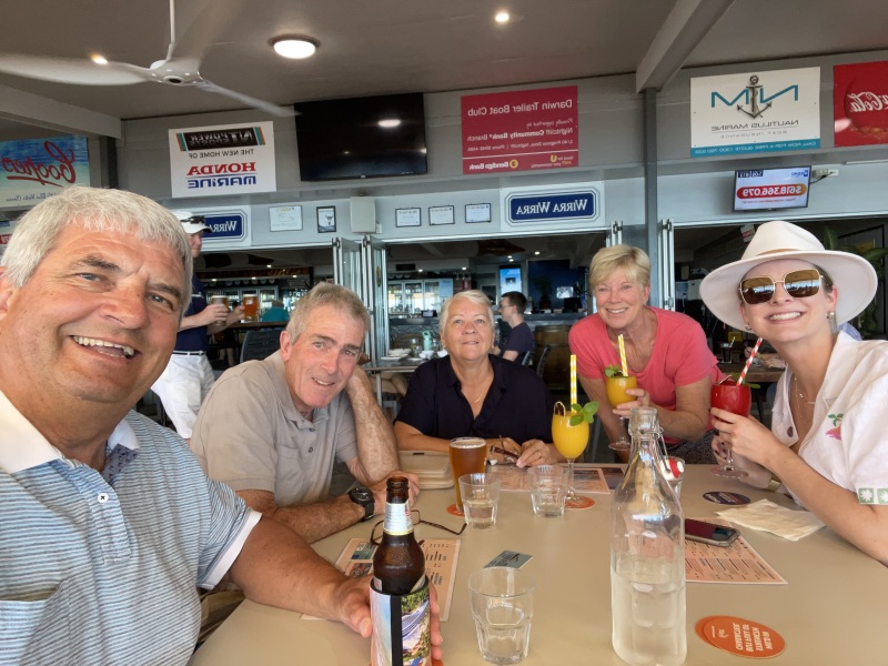 Drinks and dinner at the Darwin Trailer Boat Club for sunset was a great place and very enjoyable. Merv had just joined the club, so we all took advantage of using his club discount card :) Thanks Merv..