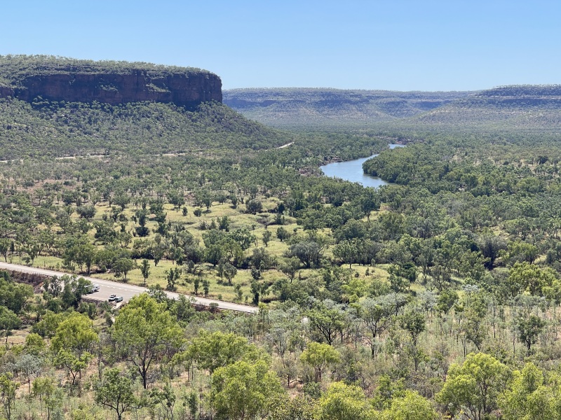 That's Victoria River down there. Can you see the crocs? Don't go swimming there!