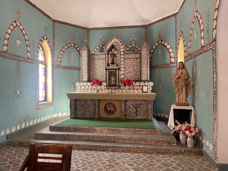 Beagle Bay Community is on the way to or from Goombaragin so we called in to have a look at their beautiful church and alter made with Mother of Pearl shell.