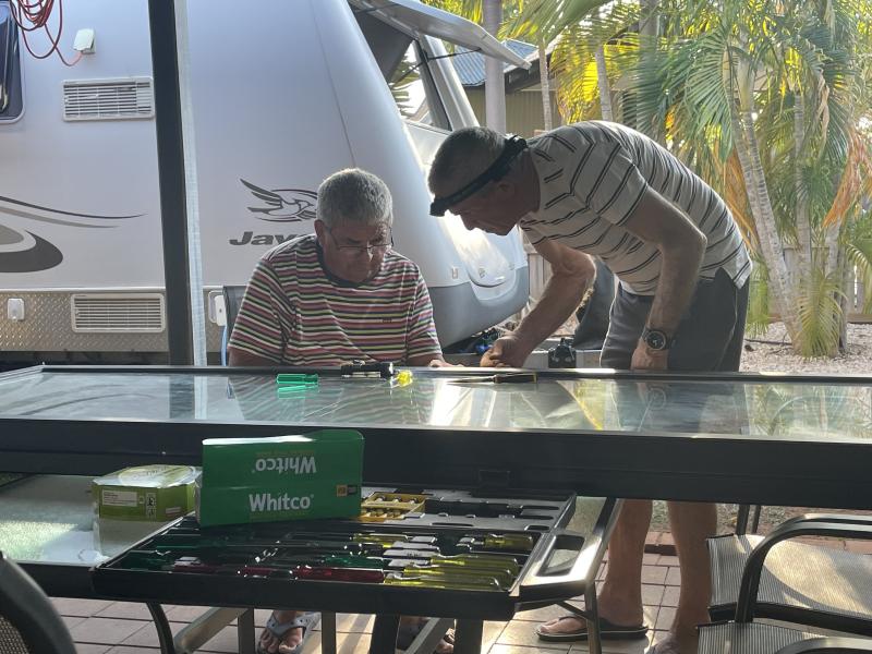 Alan is always sorting out her many computer issues and this visit was no different. Many jobs were done by the boys including fixing her dead ride on mower and installing a new laundry light and lots of watering the grass, a never ending job up these parts. Alexis and Jayne assembled an extended clothes line to dry all the new Kmart linen and sorted out the bedding. (Kmart is the best shop in Broome, and whenever you go somewhere, you see the same things - wine glasses, towels, sheets, furniture, plates etc etc all bought from Kmart).