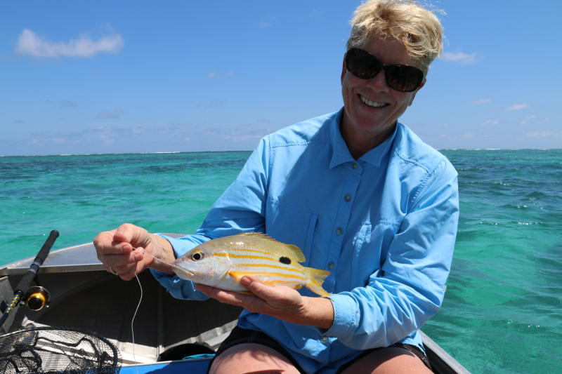 I'm yet to catch a fish - I get lots of bites but nothing holds. The fish here are smart - they grab the bait, them swim under the coral and you end up snagged. By the time you get your line free, the bait is gone, and the fish has had a feed.