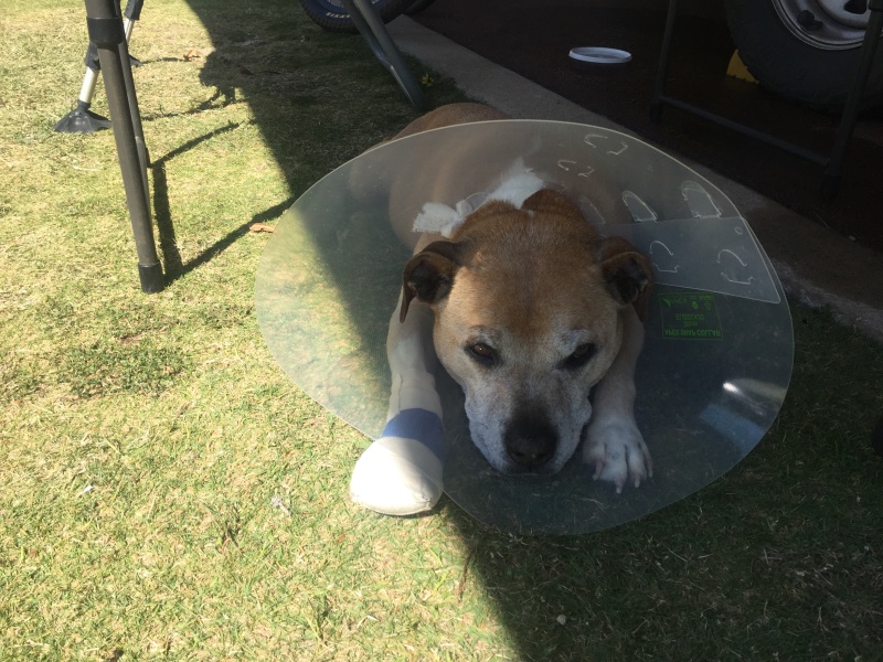 Bailey caught his nail on the van steps and partially ripped it off 3 weeks ago. It wasn't getting better so a trip to the Vets was in order and they removed the broken claw.