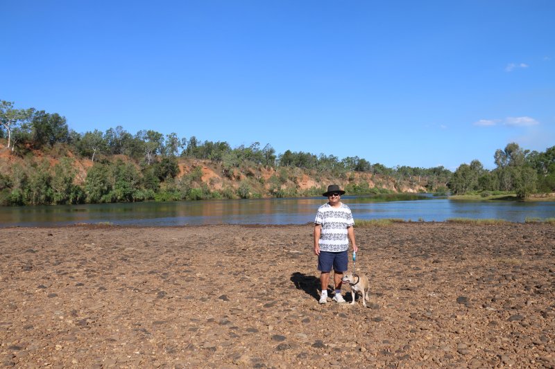 Because we're now in "croc country" we didn't dare to go anywhere near the water and kept Bailey on a lead. But that afternoon we saw a car towing a boat pull up right at the rivers edge where we'd just been. They jumped out of the car and walked straight into the water. Out jumped their dog and also wandered into the water. We were scared for them, but they didn't have a care in the world. Eventually they backed their trailer about 50 metres into the water until it was deep enough to float the boat off the trailer. They must have been locals, and not afraid of crocs or just plain stupid or a bit of both.