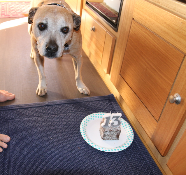 In Derby Bailey turned into a teenager and we celebrated his 13th birthday. He got a lamington! Which he loved.
