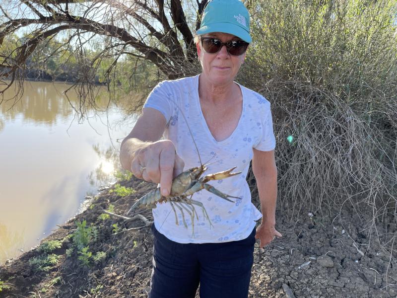 People were catching Redclaw in the river. It's a freshwater Australian Crustacean, sort of like a Yabby. All you need is a Yabby net, which Jayne purchased in Longreach. We used to have one, but threw it out because this "Opera House" style is now illegal in most states, but not Queensland. So, not much use carrying one around when they're only $15.