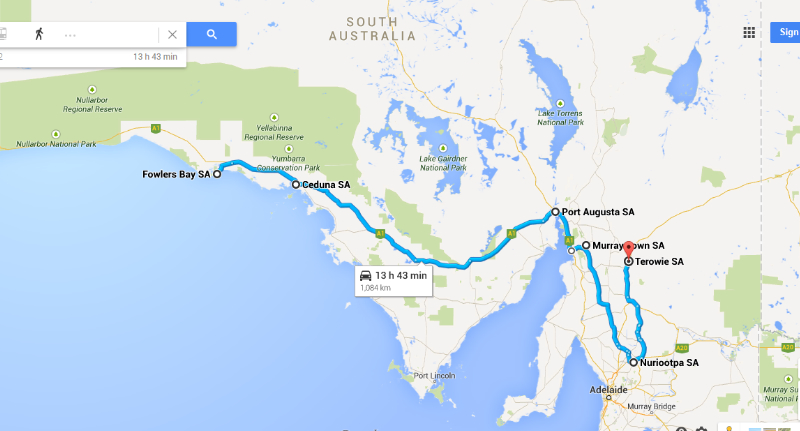 Fowlers Bay to Nuriootpa (Barossa Valley)