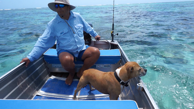 Staying at Ningaloo Station was the best place in the world for a doggy holiday. We camped for 2 weeks right on the beach looking out at Ningaloo Reef. We walked for miles every day and talked to the other campers. Then we swam, went fishing in the tinny and played soccer. We went fishing in the boat every day which I LOVED. I kept getting into trouble for trying to grab the lures on the fishing line and I tried to jump out a couple of times, but I think fishing was my favourite part of this holiday.