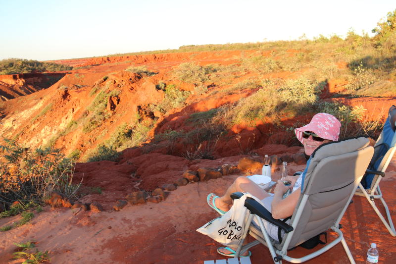 It's the beginning of the tourist season so things weren't quite ready at Goombaragin, so Kathleen and John, the owners asked if while we were in Broome we could pick up one side of Julie's eco tent which was being repaired at the upholsterer. Also waiting for us was her new shower rose so at least she had 4 sides to her tent, and could have a shower. After our errands and shopping we drove 3 hours back to Goombaragin. The scenery at Goombaragin is just amazing, they only have two camp sites and the Lookout (Site 1) is the absolute stand out. We booked this one of course and Julie stayed in one of their very nice eco tents near us.