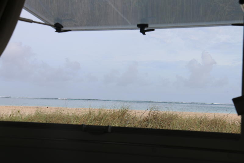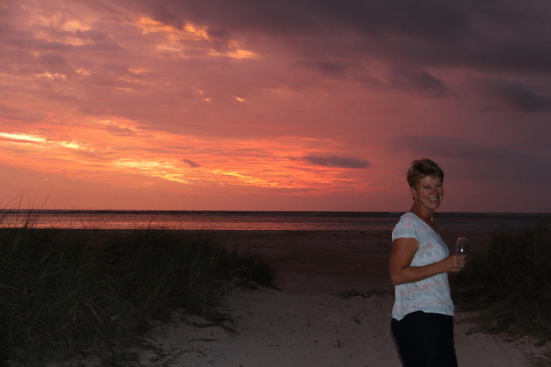 Here you can see the sand that tried to bury our mat! Also on the BBQ table, and if you look hard enough you'll see it in my hair!