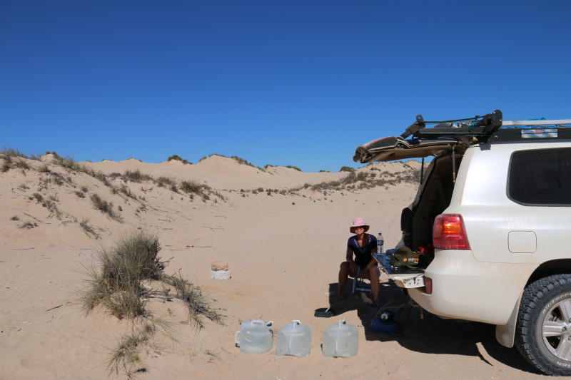 We took them with us to collect water from the wells, which involved driving over two really big sand dunes. I'm constantly amazed that the Cruiser can just drive up sand dunes, like the dunes that used to be at Kurnell.