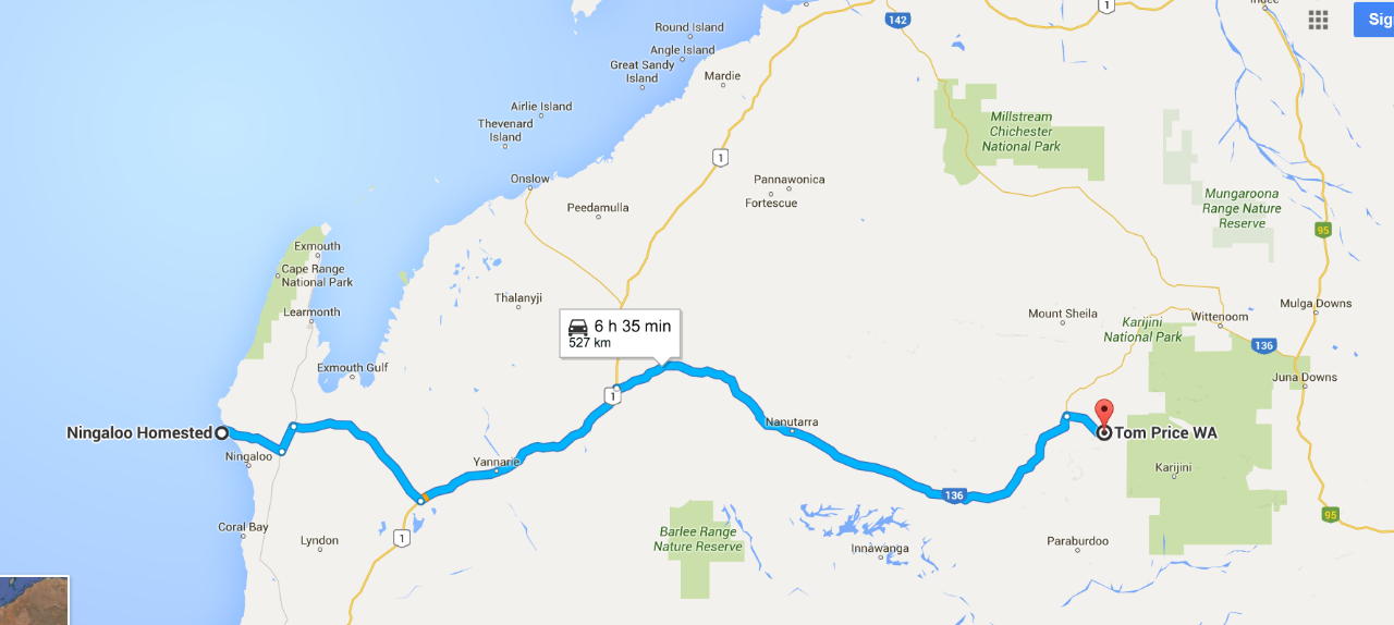 We headed inland and stopped for a free night's camping at House Creek on the way to Tom Price, a large iron ore mining town. We leave here tomorrow to drive up Rio Tinto's Access Road to Millstream Chichester National Park, where we'll be for 3 nights. We had to sit a test at the Visitors Information Centre to get permission to drive on this Private Road. We should see lots of large things on it. Then we're back onto the coast again to drive towards Broome.
